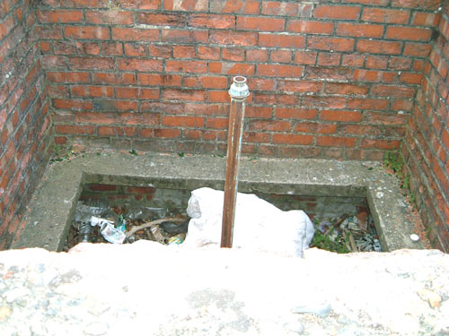 Around the lower inner edge a 10/12″ wide concrete shelf appears to run around the inner perimeter, this ledge is positioned about a foot above ground level, a small opening at the bottom of one wall acts as a drain.