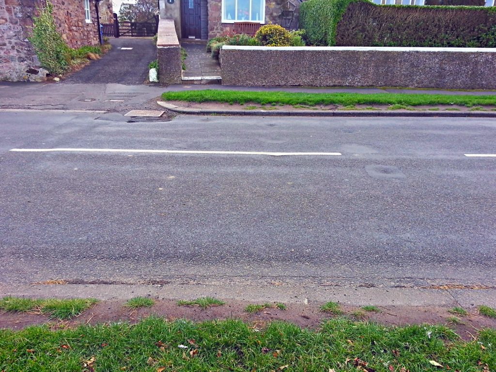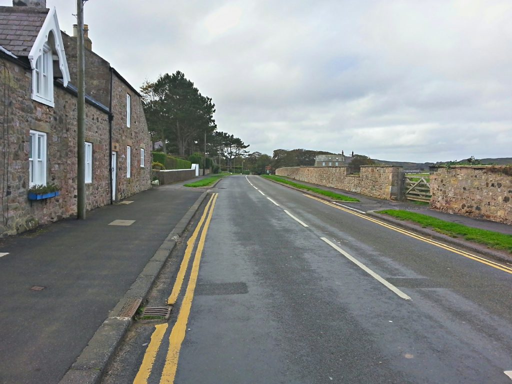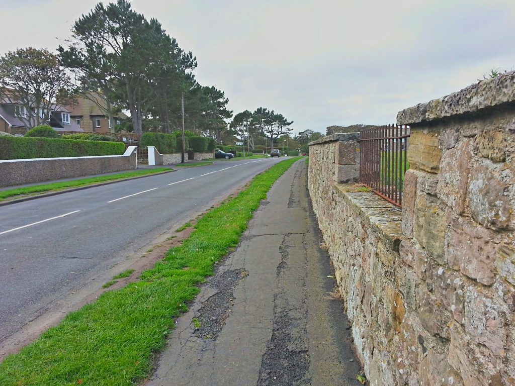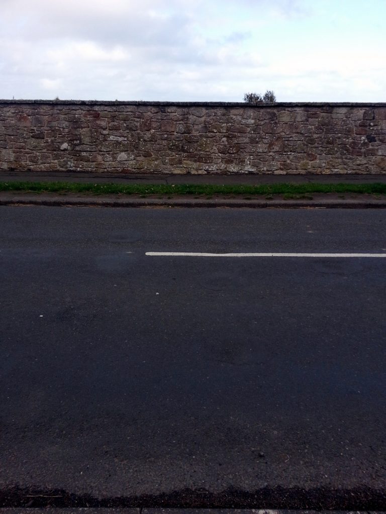 Site of anti tank vertical rail roadblock. Britain from above shows a D type pillbox to the left of the dip in the wall.