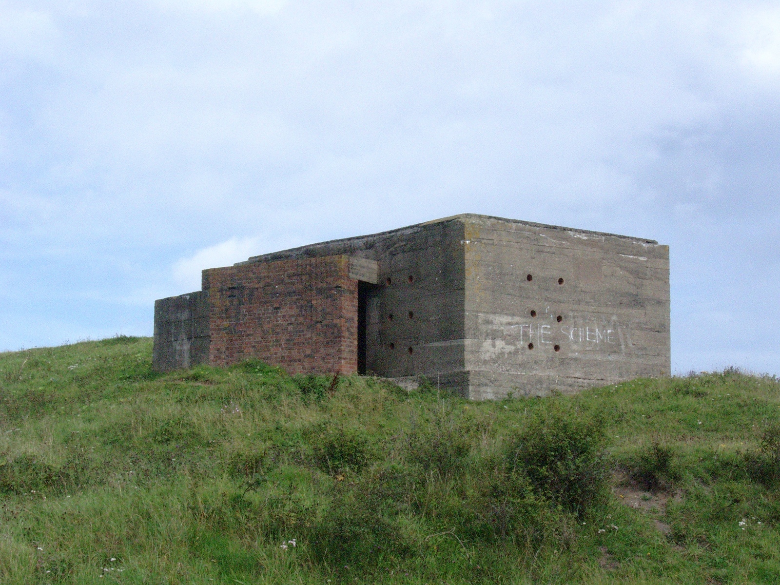 Pictures of the large gun house at Low Cocklawburn beach near Scremerston. These are from 2004 and predate the current trend for graffiti and general painting of the rear wall.