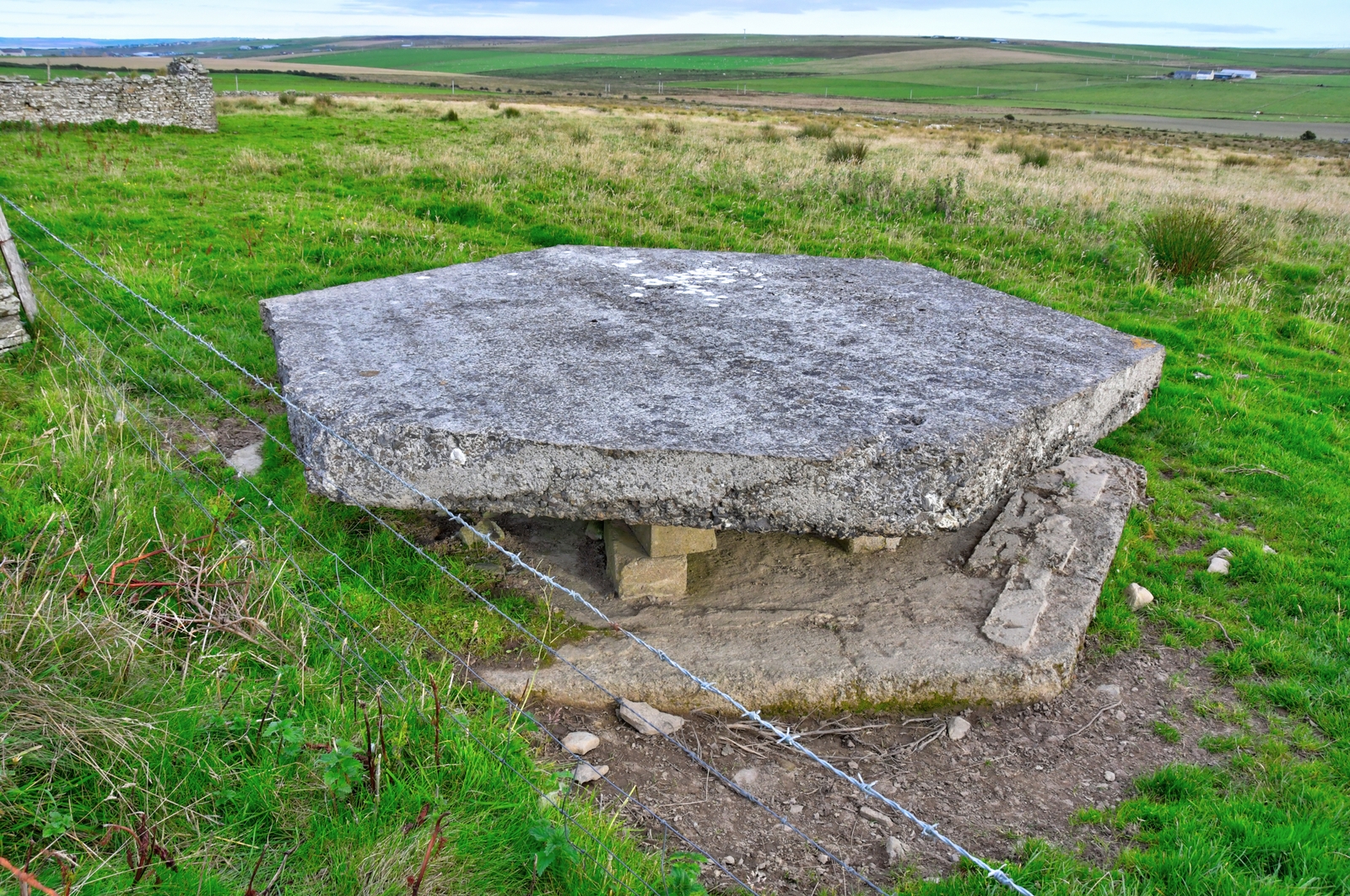 A type CP/6/40/111 pillbox at the Sands of Wright, Orkney. Thought to have been moved from it’s original position.