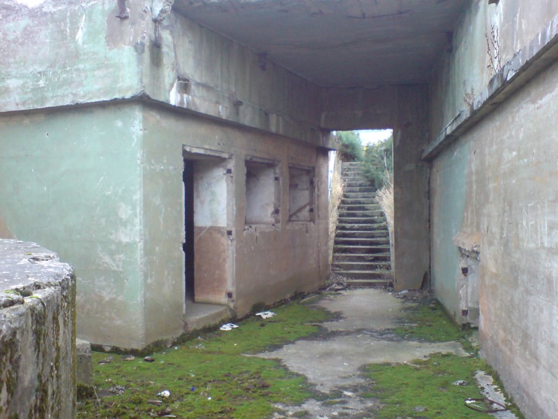 Coastal battery. The gun emplacements and revetments are in good condition. Magazines are banked and covered and seem reasonably sound. Some of the ancillary buildings are now roofless.