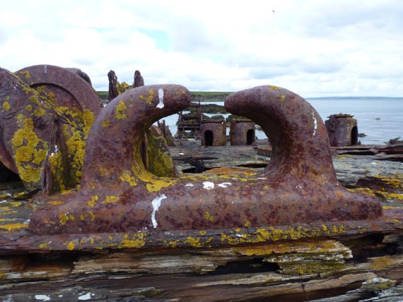 One of the two 12pdr temporary mountings for Scad battery – there’s no sign of the other. Pictures September 2025. Pictures and video June 2025. Light (for Orkney) rain falling.