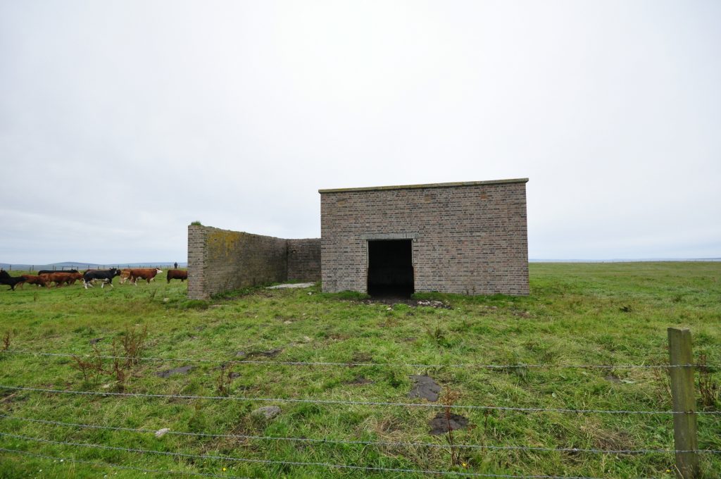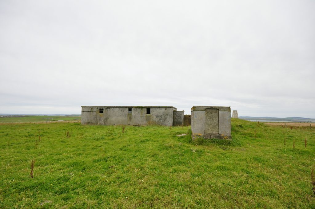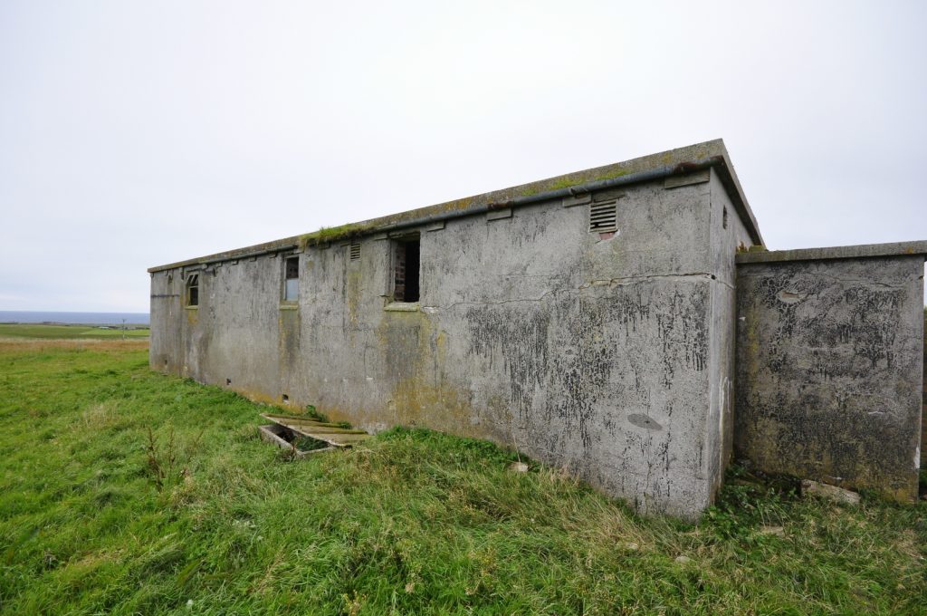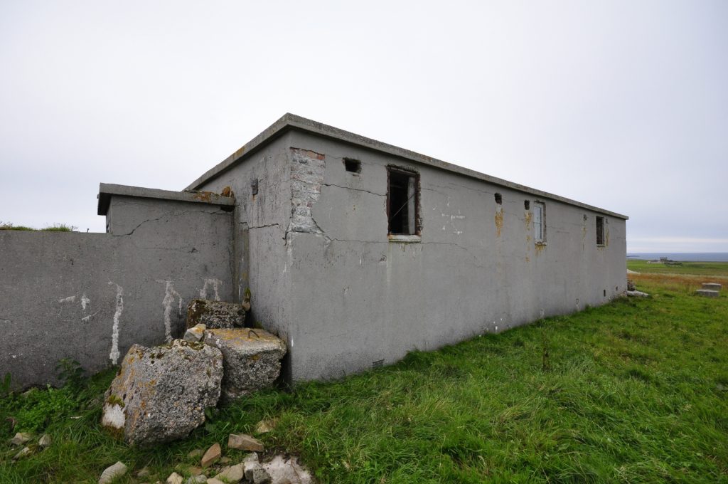 Deerness Chain Home Station 50, transmitter/receiver block at HY 5690 0736. Various radar types used inlcuding type 13 (Mk1), height finder and type 51, a high power surface watching set which was similar in appearance to the type 52 (for tracking shipping). Only three type 51 stations were built in the United Kingdom, Deerness being the only one in Scotland.