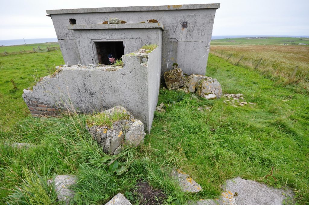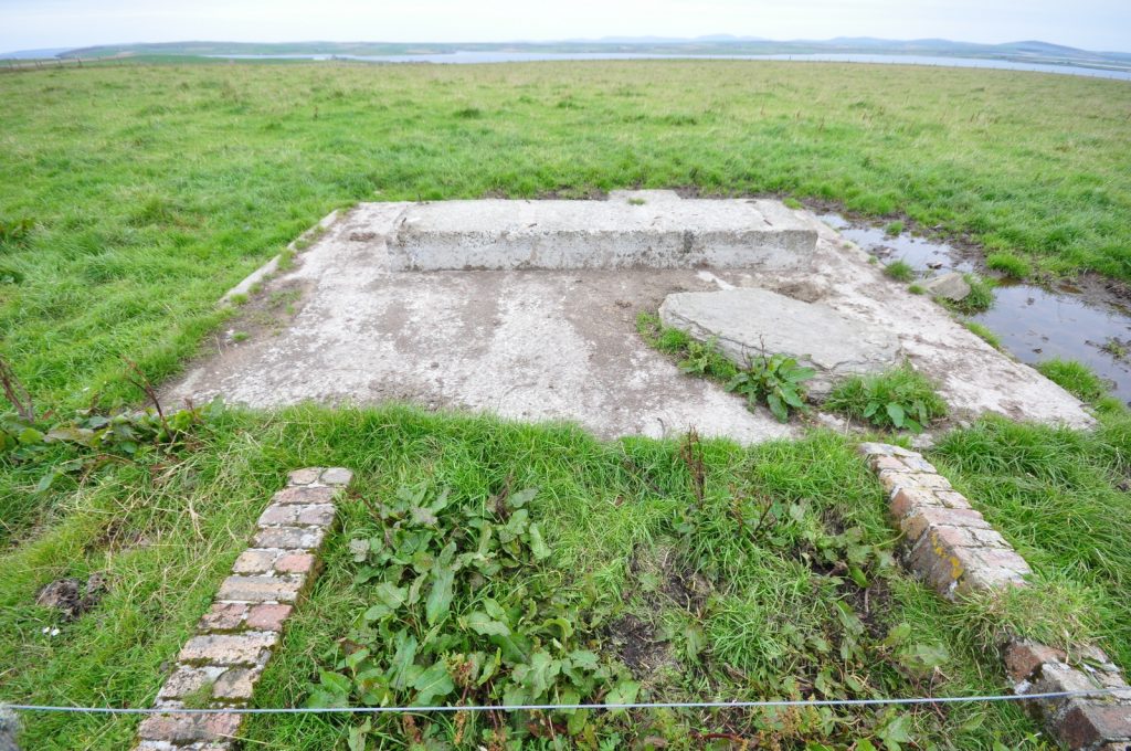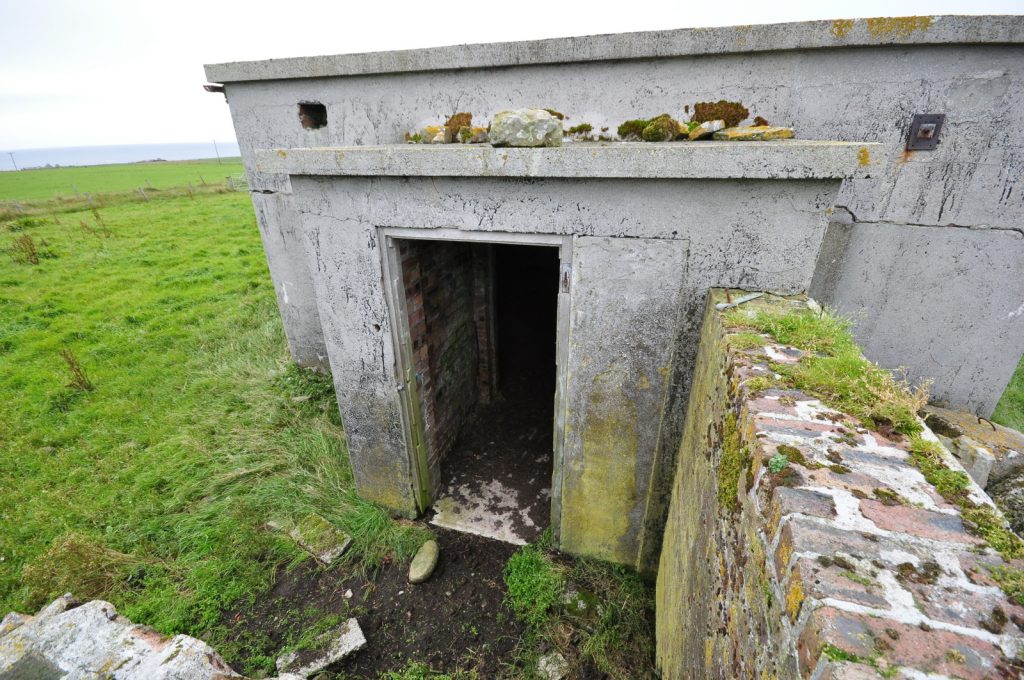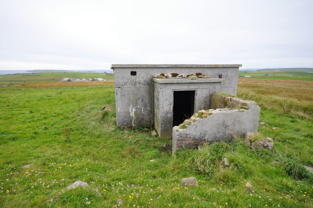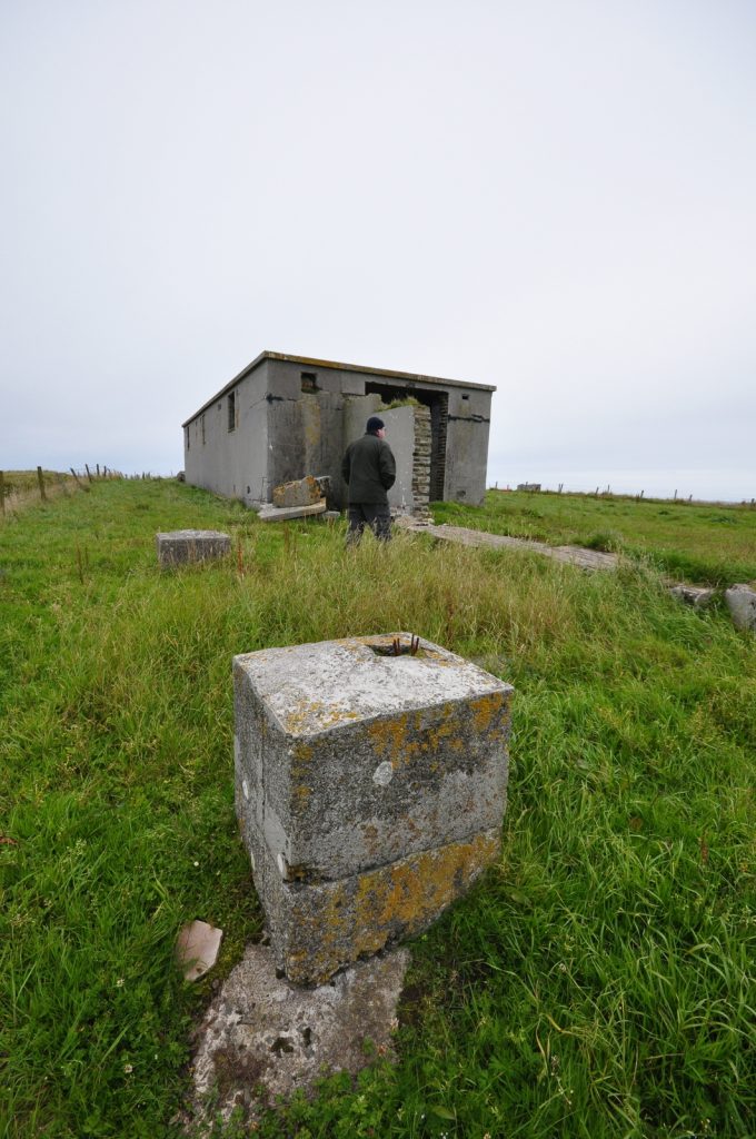 Deerness Chain Home Station 50, transmitter/receiver block at HY 5690 0736. Various radar types used inlcuding type 13 (Mk1), height finder and type 51, a high power surface watching set which was similar in appearance to the type 52 (for tracking shipping). Only three type 51 stations were built in the United Kingdom, Deerness being the only one in Scotland.