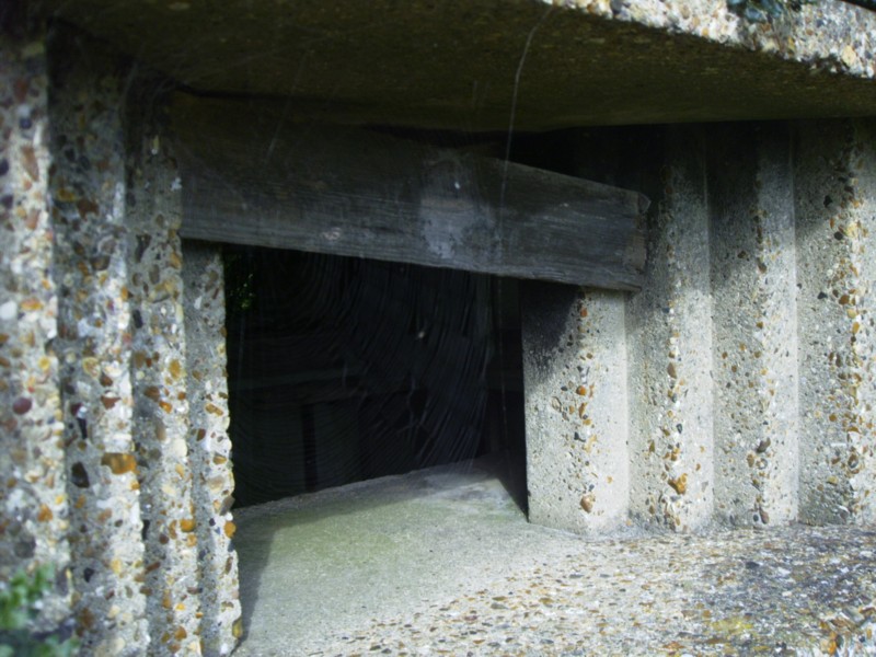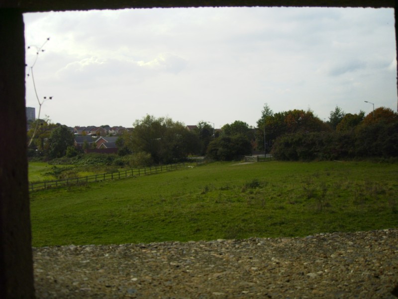 Loophole facing the canal and inside pillbox through the loophole towards Rugby and finally view across the canal from opposite loophole.