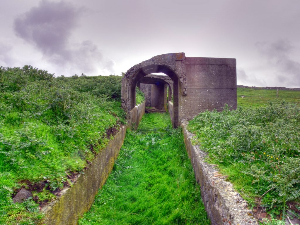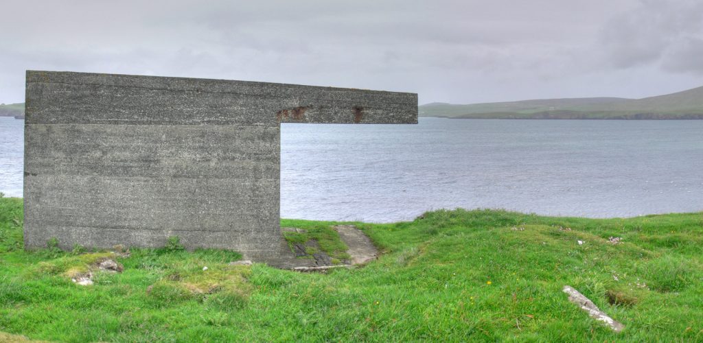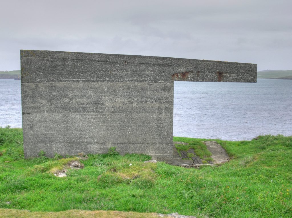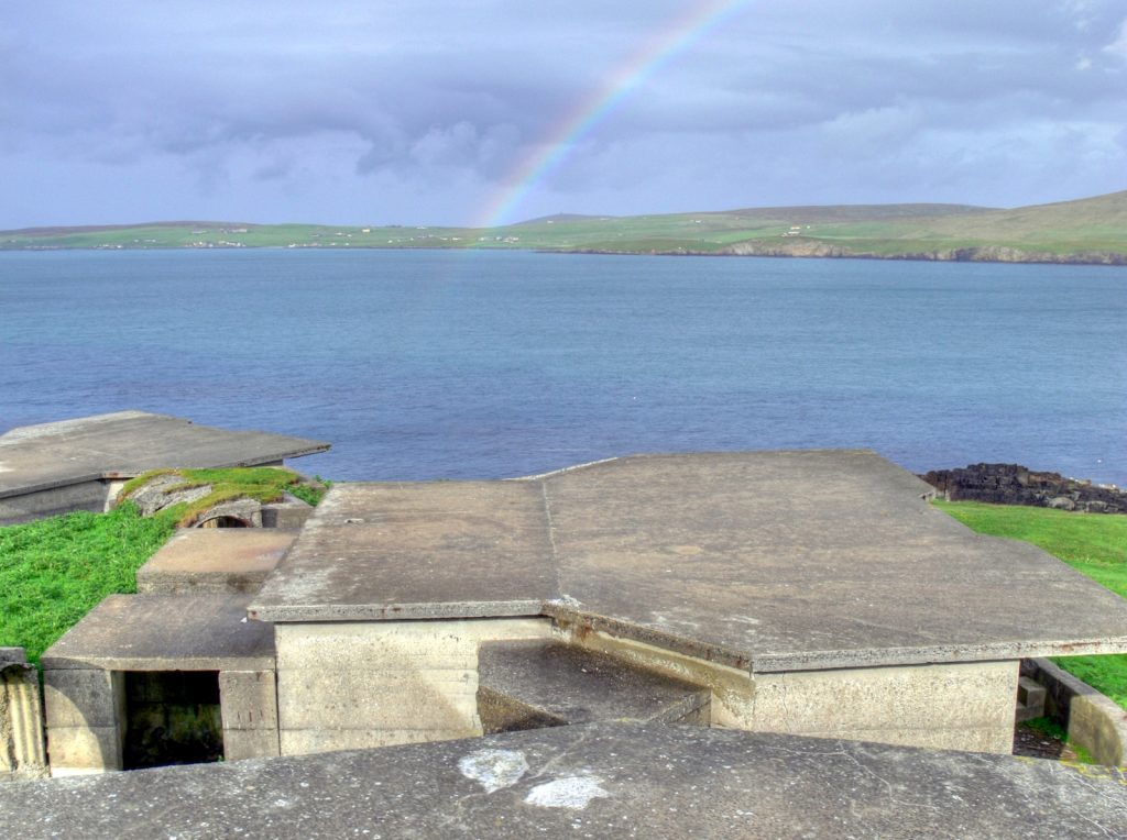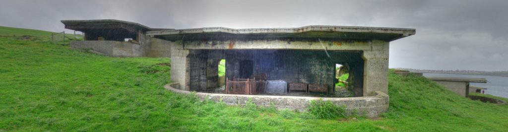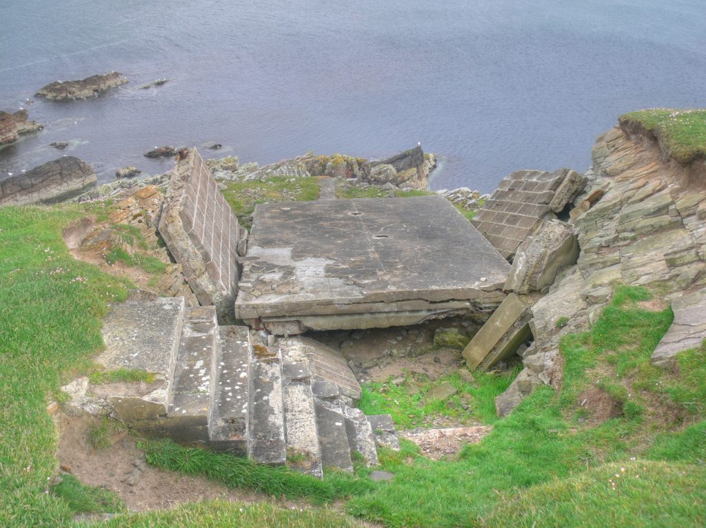 Coastal Battery. The surviving remains of this battery consist of two gun emplacements, magazine, engine room, battery observation post and three searchlight emplacements. In June 1940 two 4-inch guns were emplaced, being replaced in July 1940 by two 6 inch guns. The two 4-inch guns were moved to Calback battery at Sullom Voe (Scottish NMR HU37NE 10). Shetland Islands Council have now purchased the site.