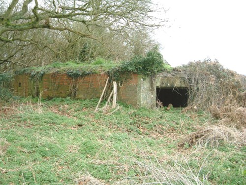 I could not find a reference to this particular box in either H Wills , Ironsides Line or the DoB Database. I have visited another Vickers box near by at SU924442. This is also in a similar style but is concrete shuttered and has a fully enclosed entrance way which faces to the rear.