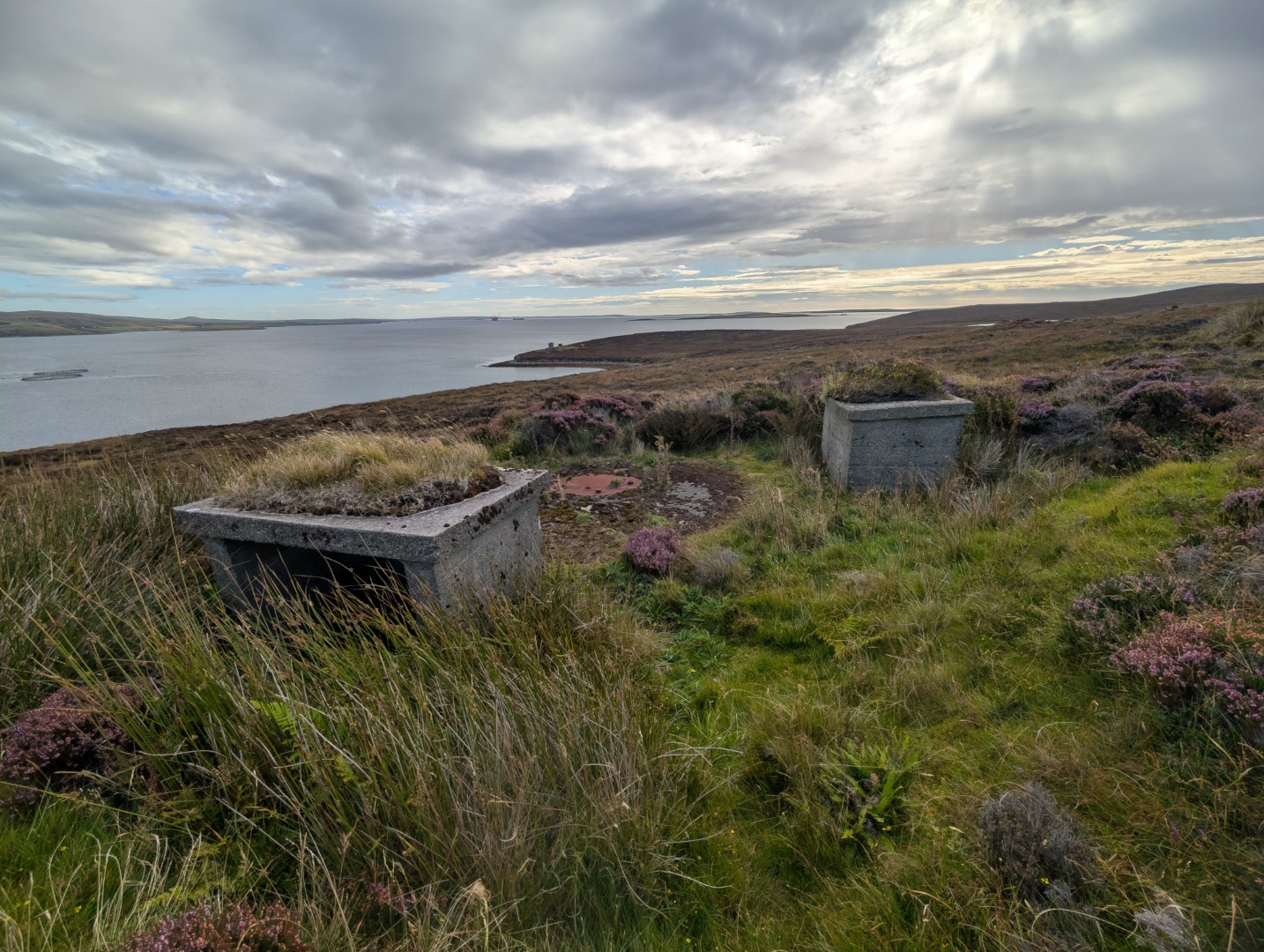 One of the two 12pdr temporary mountings for Scad battery – there’s no sign of the other. Pictures September 2025.