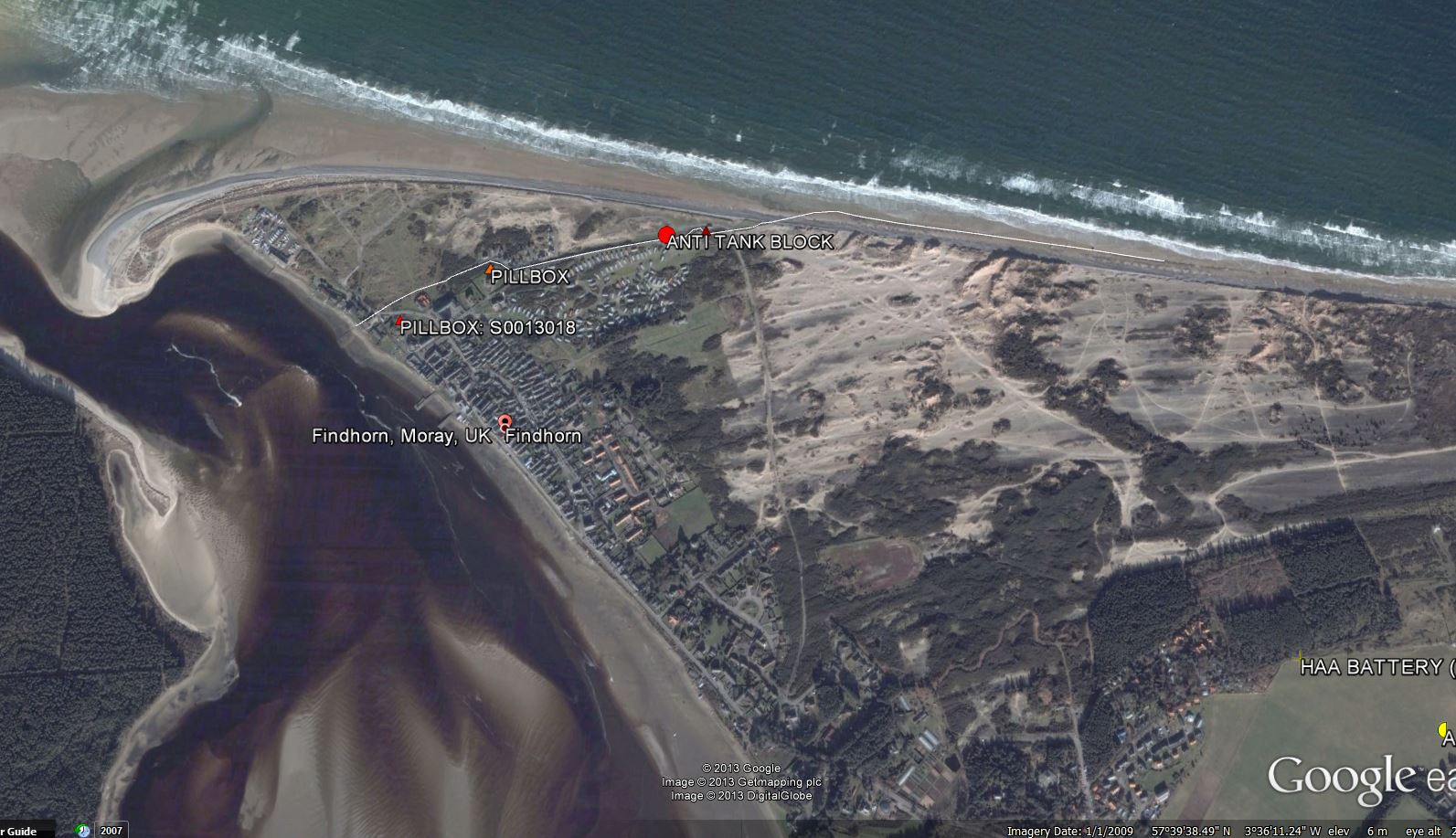 Findhorn is located on the Moray Firth and is the next settlement to the west of Roseisle. The sandy beaches and easy access inland from same made this area a potentially attractive invasion area. It was therefore heavily fortified.
