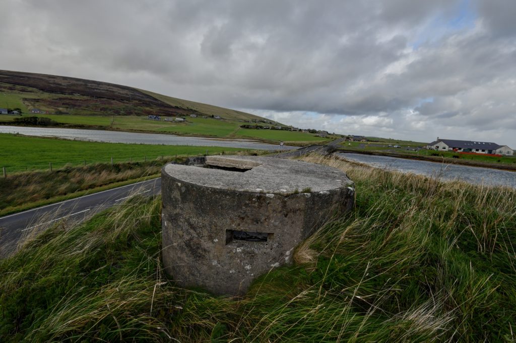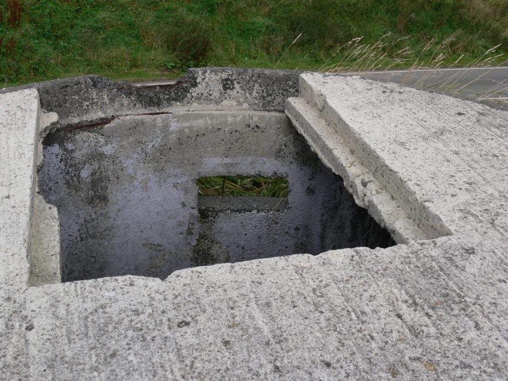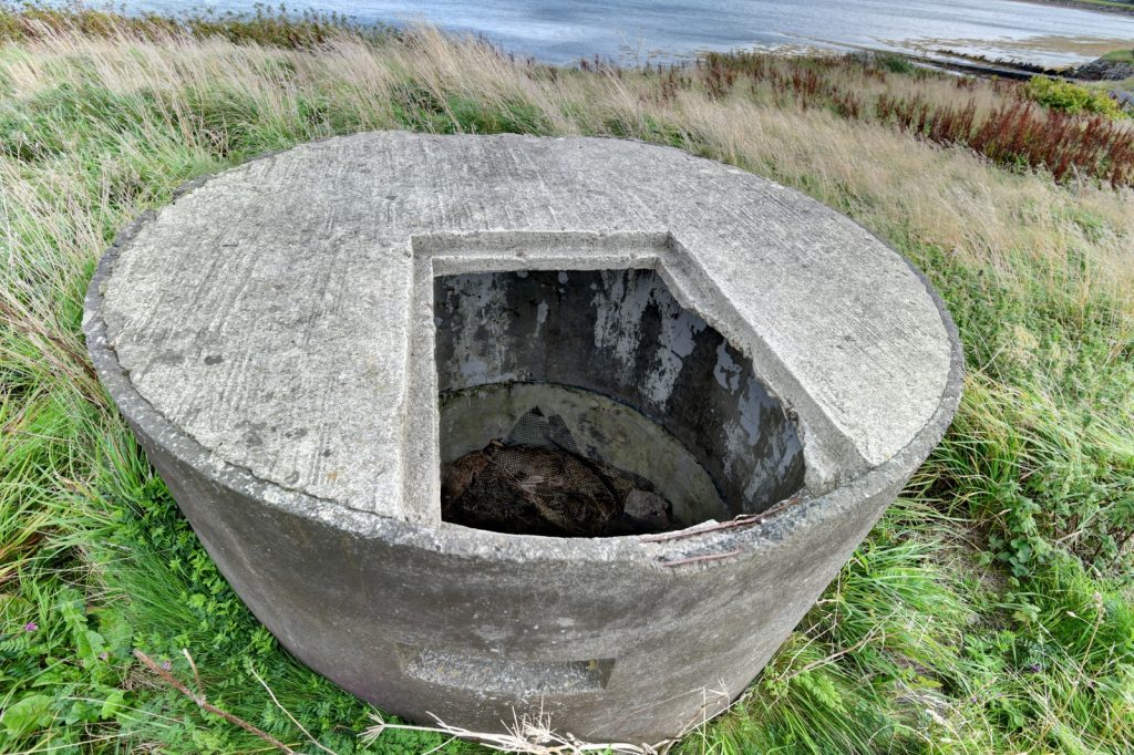 An interesting Type 22 with overhanging roof and entrance hatch in that roof. Located in a Private Garden next to Orkney College.
