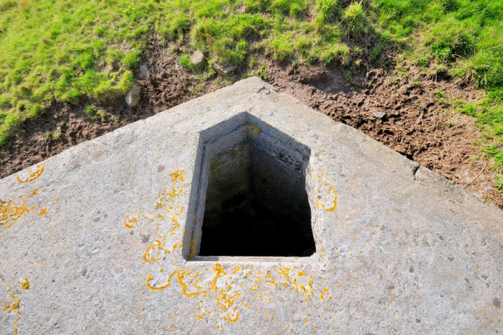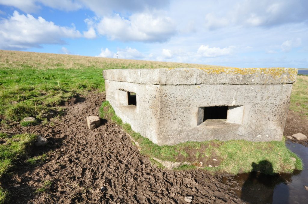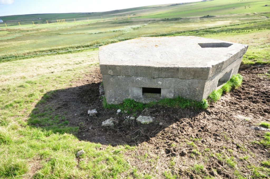 A type 22 pillbox with a sunken entrance located at Lyness on Hoy, Orkney.