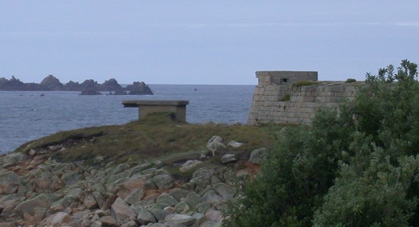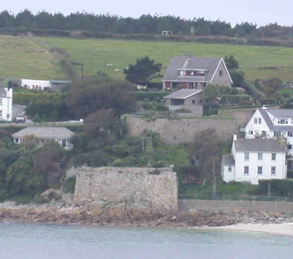 These photos show a pillbox built into the original fort defences and covering Porth Cressa Bay.