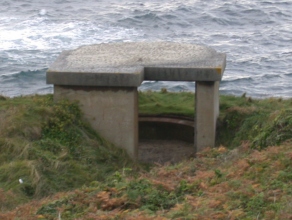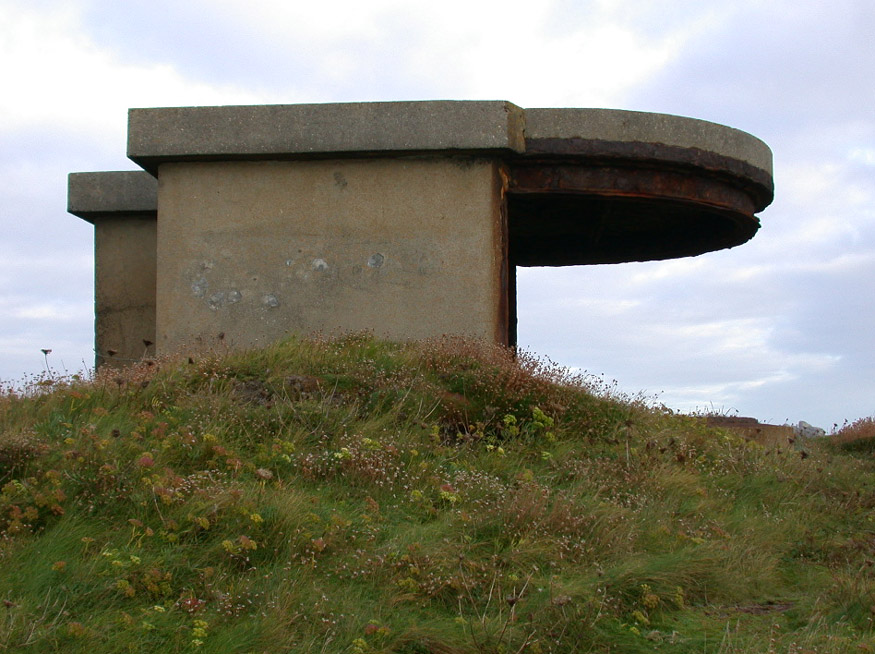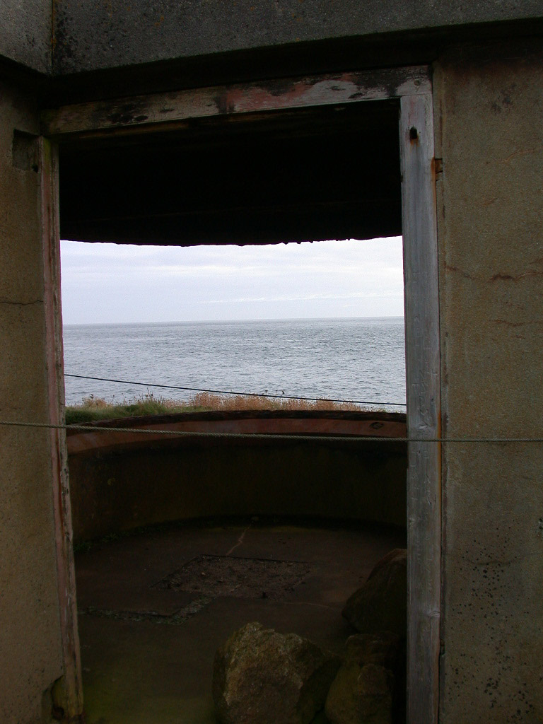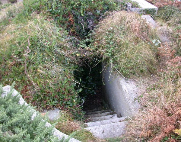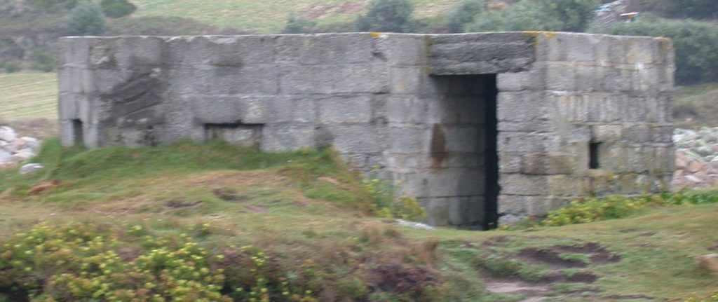 At a B&B I stayed at for a few days during my last visit to the Isles I noticed a picture on the wall of the sitting room. It shows a blast wall at the entrance of the pillbox pictured above. This feature is no longer there.