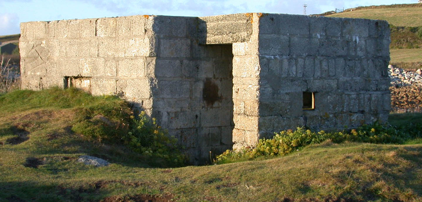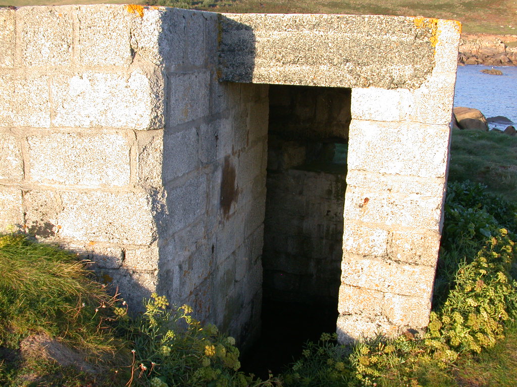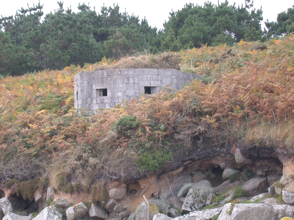 Pillbox defending the entrance to Porth Cressa Bay.