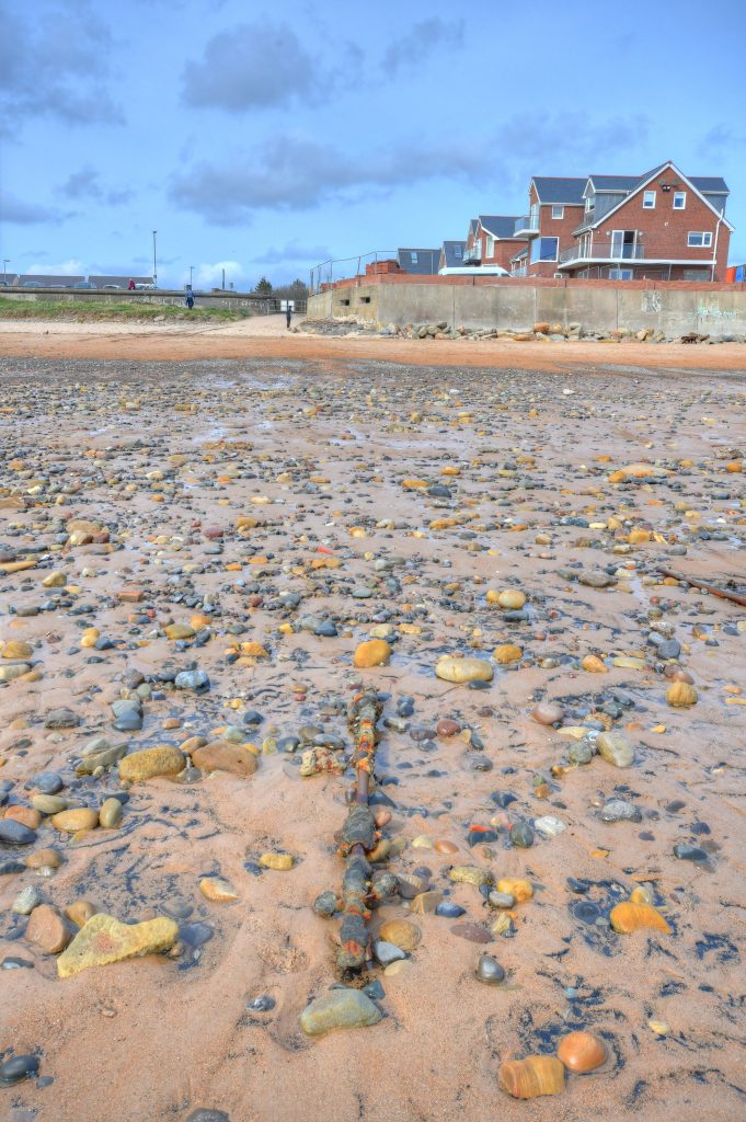 This pillbox has now been opened up after the adjoining garden was extended over the roof. The area behind the pillbox has been cleared of sand to reveal the fact that the pillbox is a double Machine gun pillbox with each compartment having a separate door covered by it’s own pistol loop. There is what looks like a third loophole to the right of the interior view but this is most likely damage from previous sea wall works.
