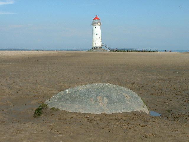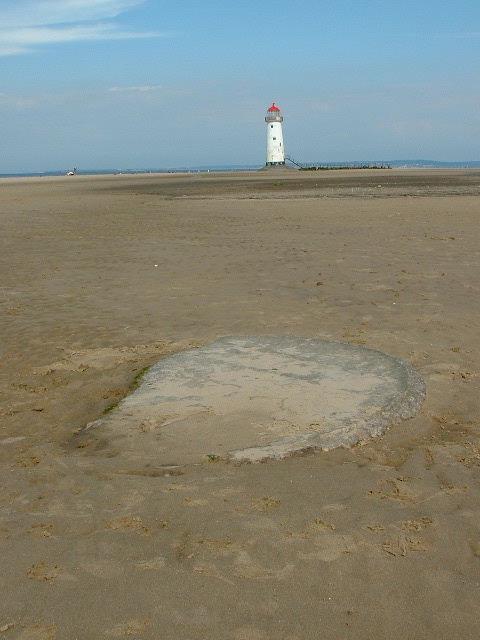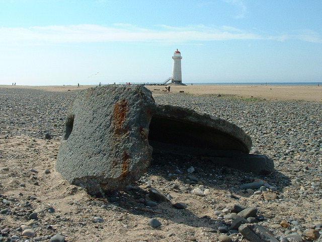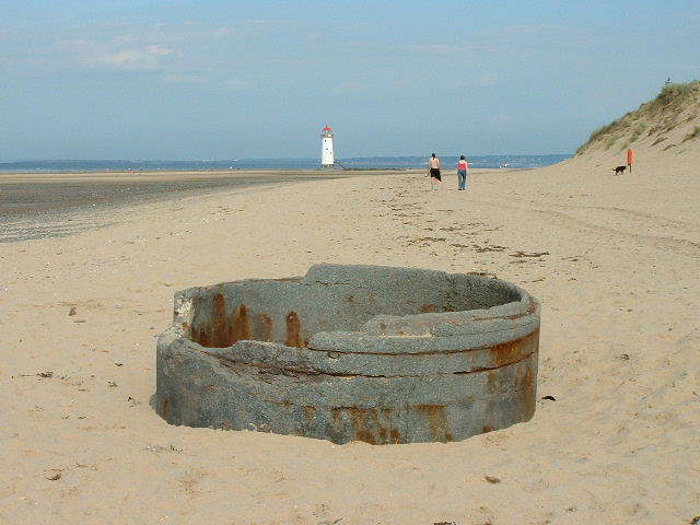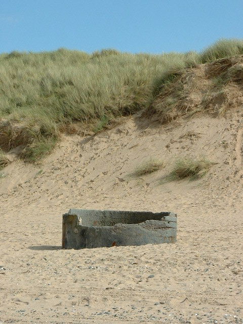 About 200m west of the lighthouse the remains of another Type 25 pillbox can be found. The circular section of this example is relatively intact but 75% of it is buried in the sand. About 50m further westwards the circular concrete top can be located, but walk carefully as it is very easy to miss!