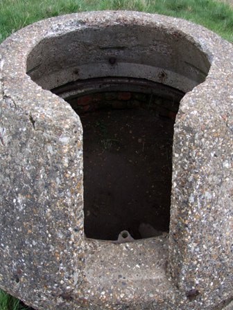 One of the Tett turrets was excavated by the BBC Two Men in a Trench team, whose efforts exposed the original crawl-way. A pair of WW2 goggles were found inside. As you can see from my photographs it has been hollowed out inside and now rests on bricks. The concrete pipe of a second Tett turret nearby is completely full of earth.