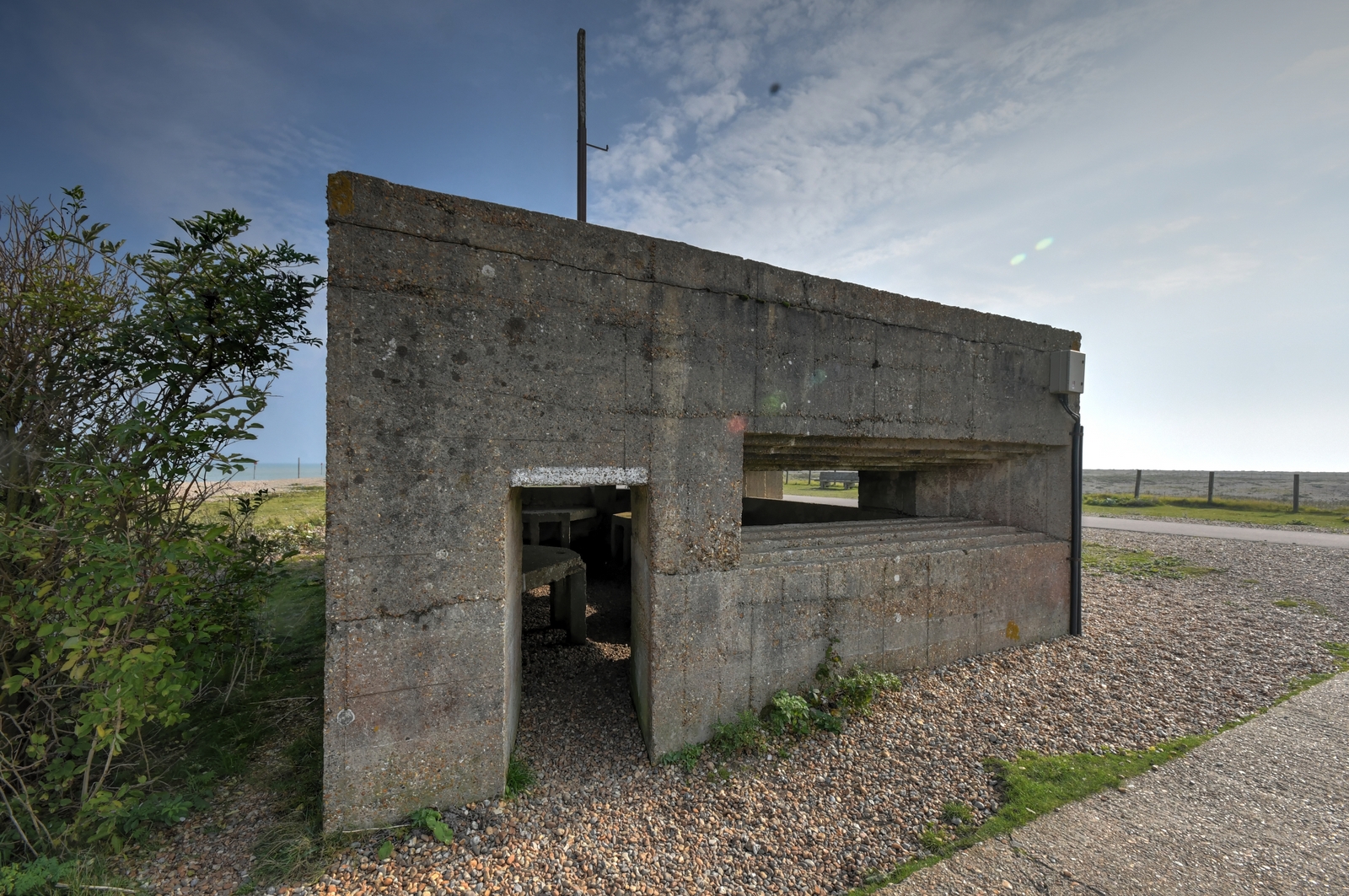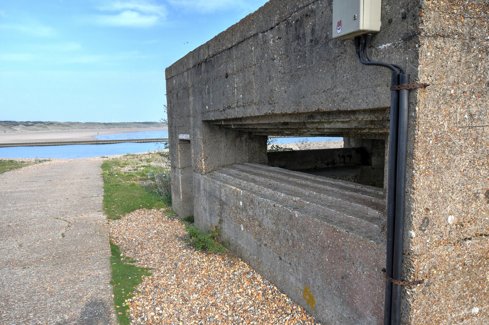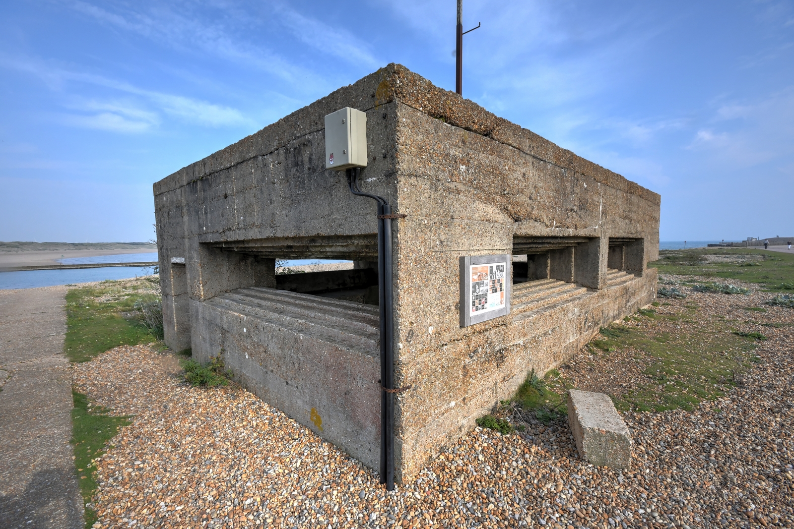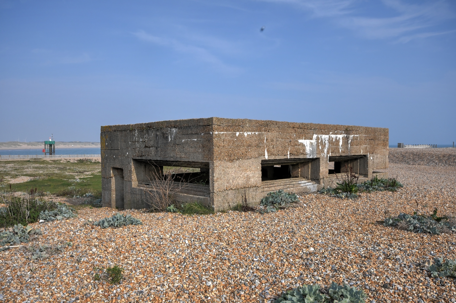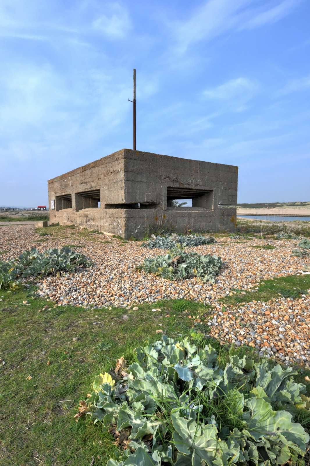 These local design variation Vickers MMG pillboxes are located at the entrance to Rye Harbour, East Sussex.