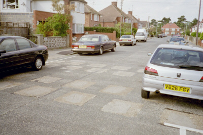 Visible as slight depressions / darker patches in the road surface these are vertical rail sockets for a double roadblock located at […]