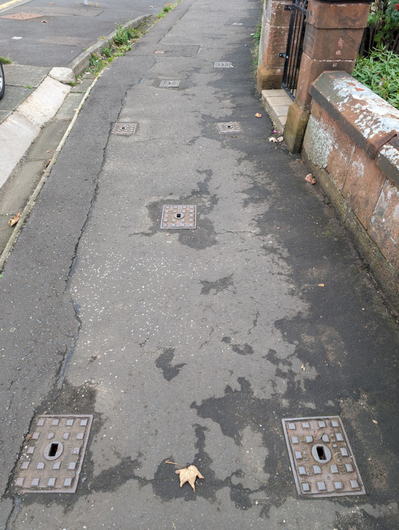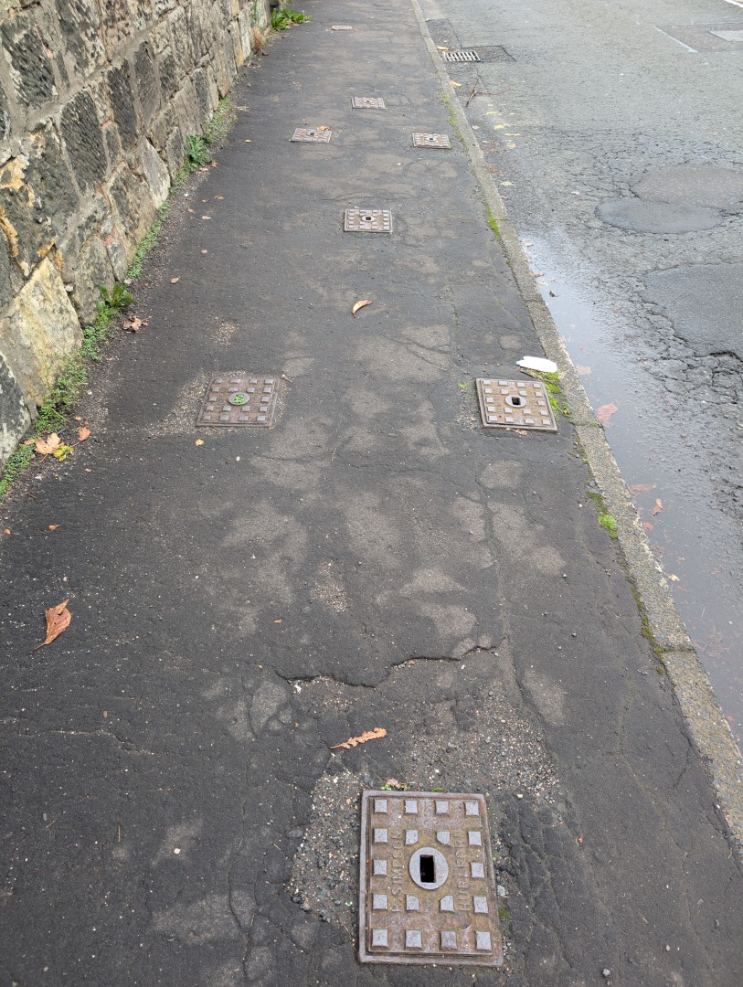 Home » Defence Types » AT Hairpins » Three Bent Rail (Hairpin) roadblock remains in Ardrossan.