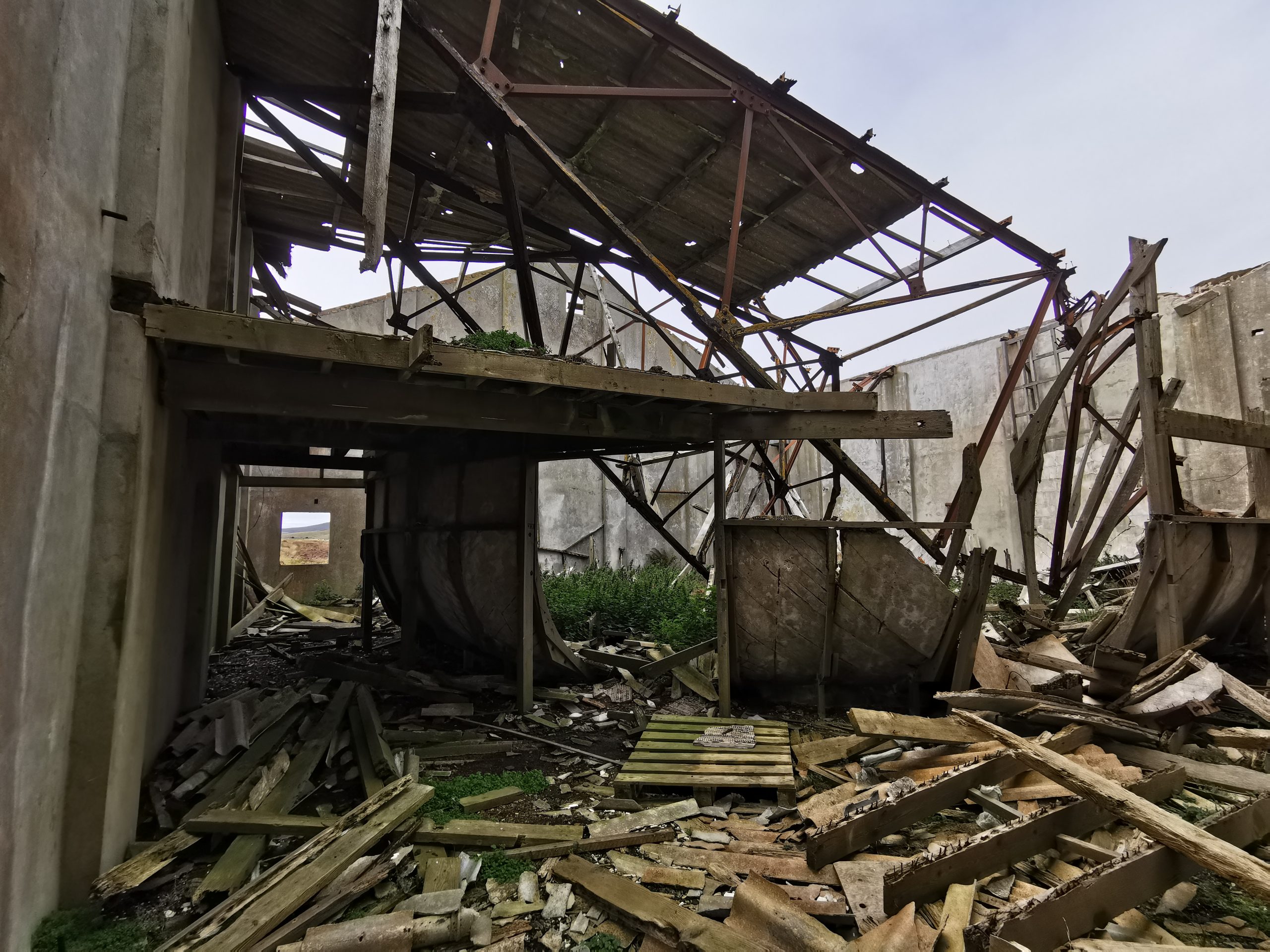 Sadly, this unique Torpedo Attack Trainer, is rapidly being destroyed by Orkney’s harsh weather. Nearly all of the roof is now missing and the remains of the trainer “sphere” are almost gone. These pictures are from 2007.