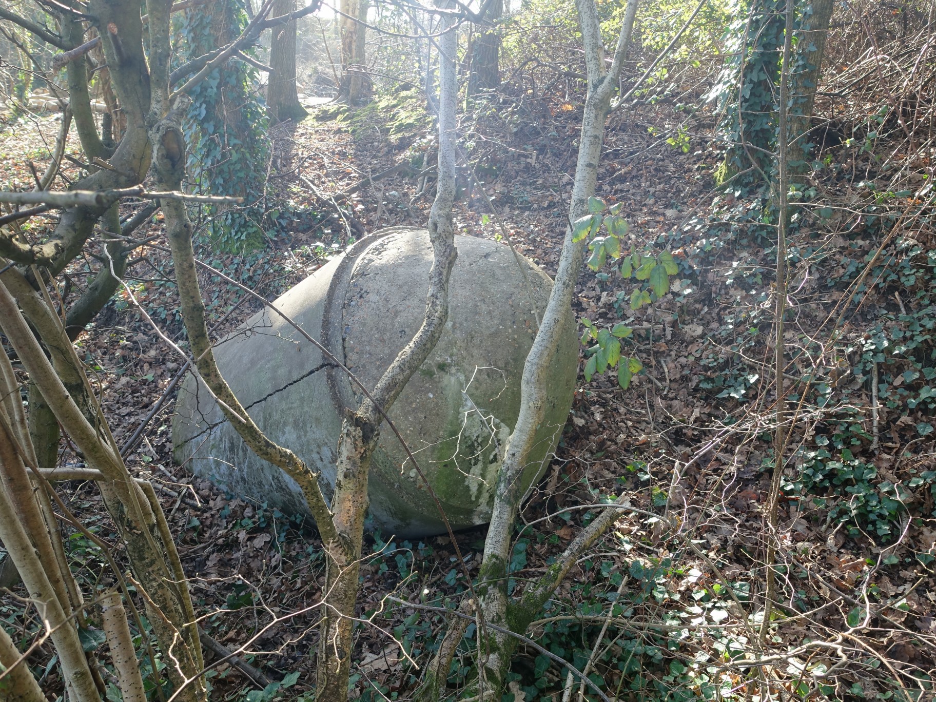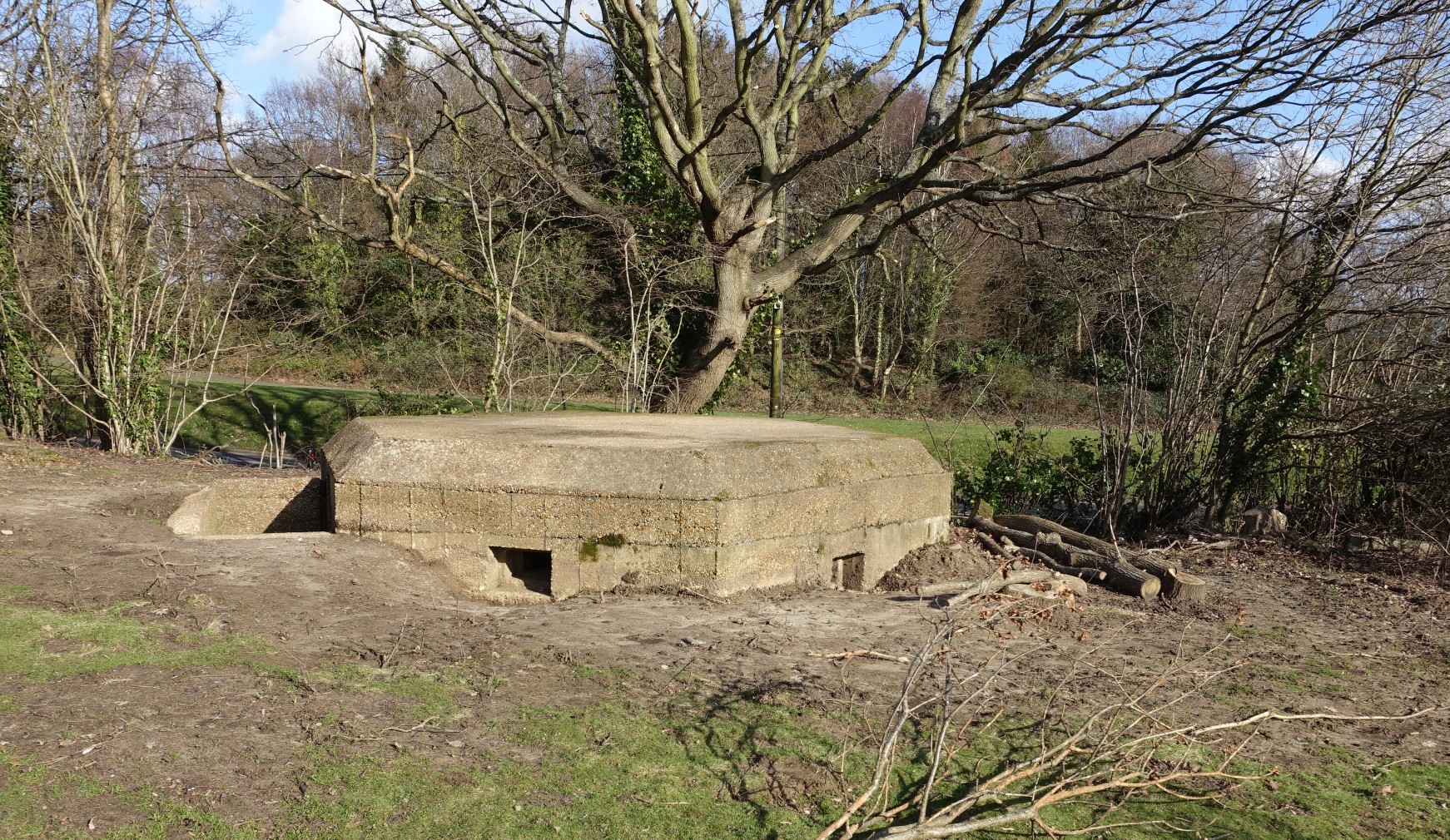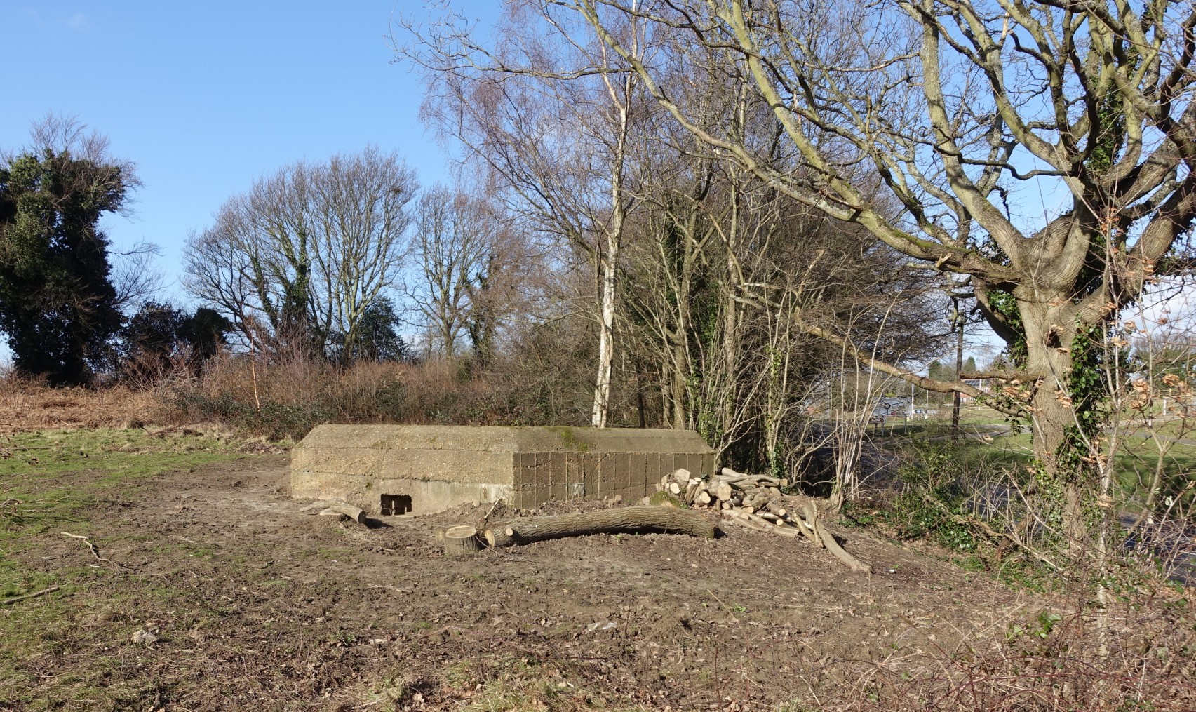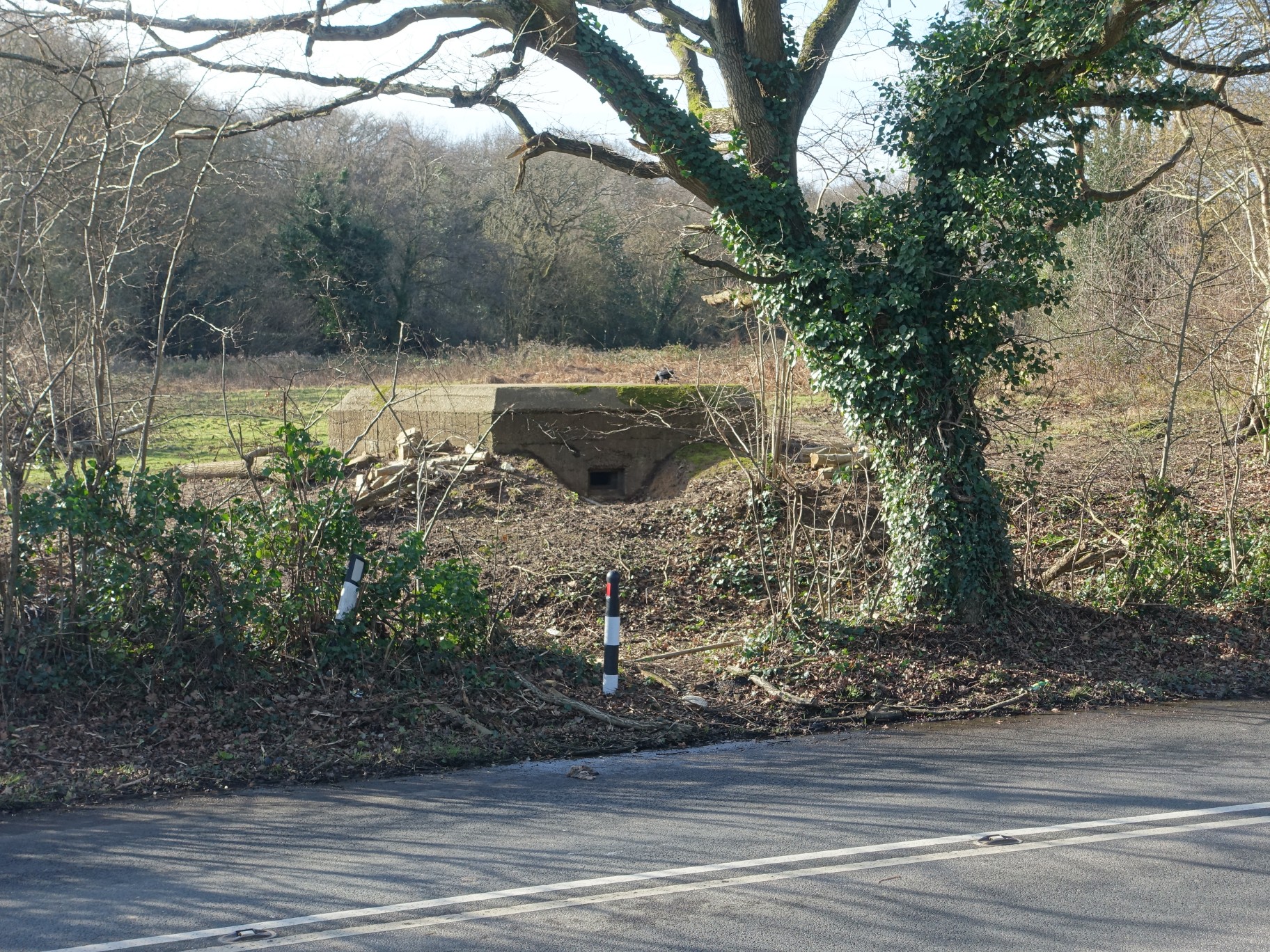 We corresponded a couple of weeks ago regarding a road block at Pear Tree lane, Little Common, Bexhill and you have added it to your gazetteer. Now, on the main road from Bexhill to Ninfield / Battle a pillbox has appeared! Somebody has recently cleared all the undergrowth from around it and fully exposed it, clearing all the inside as well. It appears to be in very good condition. Perhaps they have been in contact with you. I have used this road for more than 50 years and have not been aware of it! There is also a concrete cylinder in the ditch just north of the pillbox probably similar to the ones at the garage in Sidley 1/2 mile away? I’ve attached photos taken from a footpath and the road. The site appears on the “Open Street map”OS TQ 72780998. Hope this is also of interest as again I can’t find a reference to it on your database.