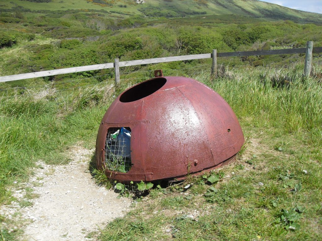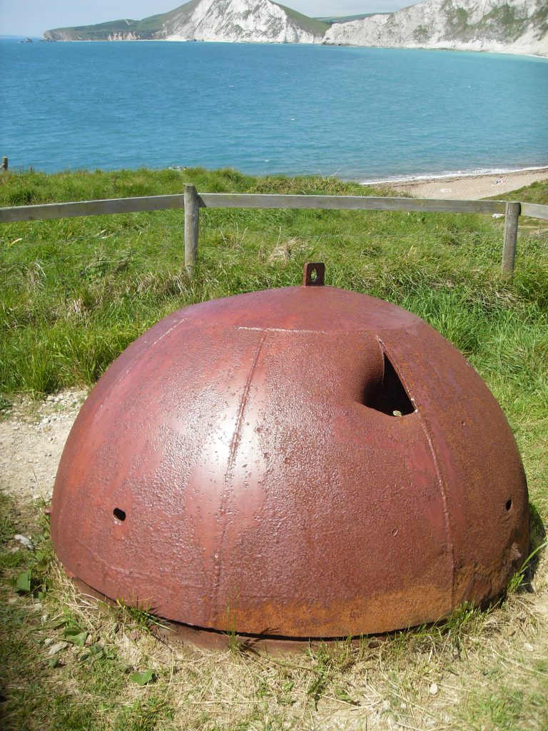 Allen-Williams Turret now located outside the boundary of the Lulworth Tank Ranges. However, it is now used as a rubbish bin!