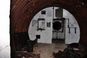 A small opening leads to the escape room. This room has the escape tunnel leading from it, which is formed from 750mm diameter concrete drainage pipes. There are a number of small pipes leading from this room to an unknown location (possibly outside the hide). These may be related to the generator that was probably installed in the hide to recharge the radio batteries.