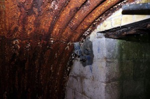 The roof of the whole structure was made from corrugated iron sheeting, in a circular cross-section, similar to the traditional air raid shelter. The iron sheeting showed signs of having been painted a white colour, but most of this paint has fallen away. The exposed iron sheeting is corroded.