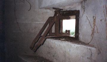 The three front faces are angled at 45 degrees to each other and are approximately 2m long with a centrally placed embrasure. The sidewalls are 1.5m long and the rear wall is 4.5m long with a central door and an embrasure on either side of the door.