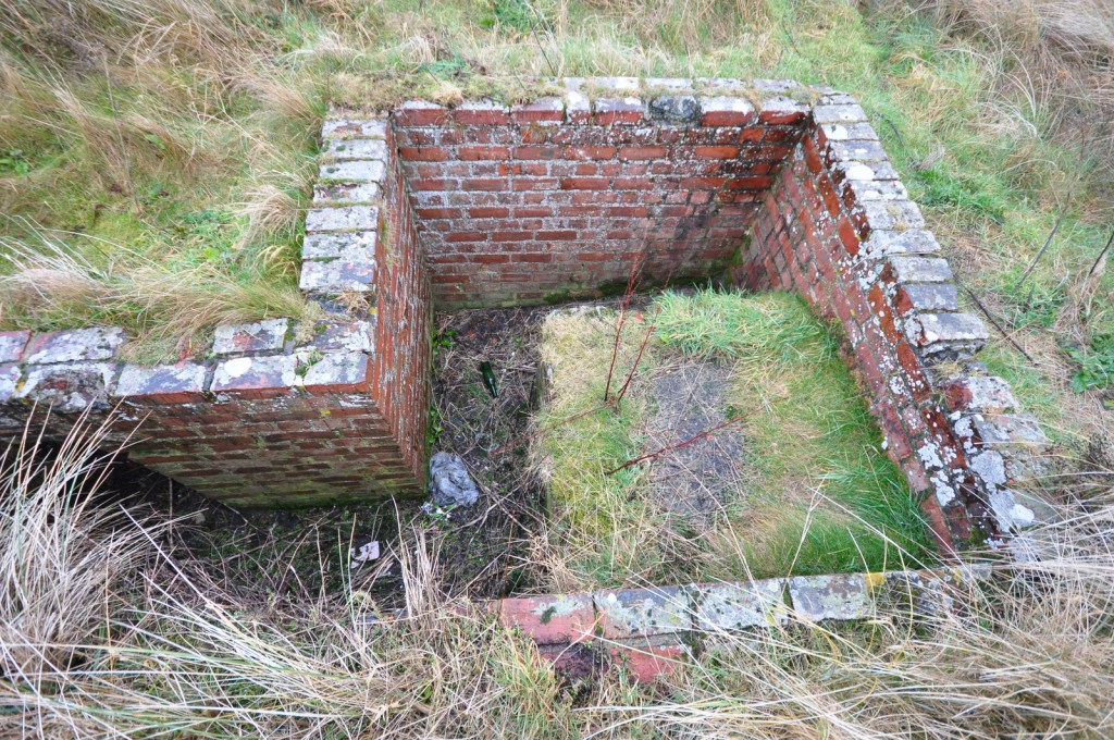 The pictures below are of a pair of Open Machine Gun Emplacements at Bamburgh, Northumberland. One has a straight trench to the ammo locker and the other is a “hockey Stick” shaped trench. S0007195 and e26604