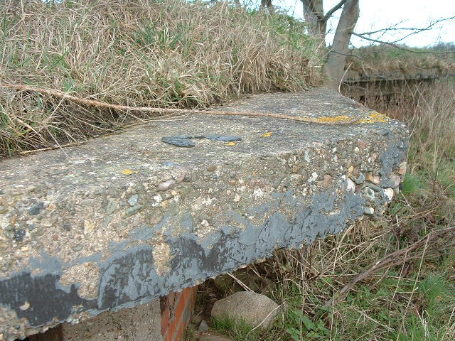 A close-up of the concrete roof. Note the `bituminous` type waterproof covering which would have been put on before the `camouflage` layer of earth and grass.