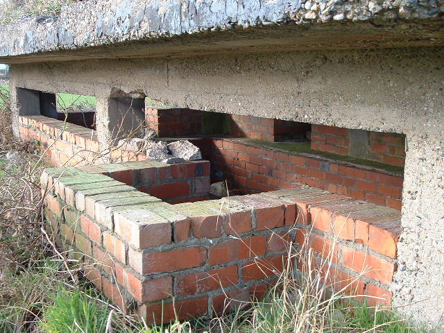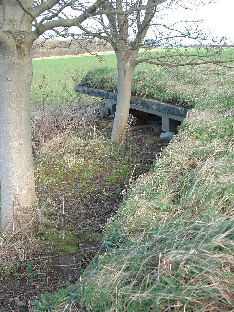 “The seagull trench seems (to me) to be non-standard and those I have been in are all different. The best examples are without doubt at Bicester where there are two back-to-back, but separated by about 50 metres and on the sides (blind) are Oakington pillboxes (imagine a square with seagull trenches north and south and oakington pillboxes on east and west sides). This defended locality is not unique as Honeybourn had them too. The trenches are brick-built with concrete slab roof (in plan view similar to a bird’s wing). At ground level only the continuous loophole (with brick supports holding up the roof) and roof can be seen (not dissimilar to the Oakington pillbox).”